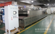 2、外形尺寸(約):長13000mm*高1800mm*寬2400mm,地面到網(wǎng)帶的高度為1000mm;進(jìn)料區(qū)1000mm,升溫區(qū)長500mm,恒溫區(qū)長10000mm(分5段均可獨(dú)立控制),出料區(qū)1500mm;