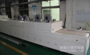2、外形尺寸(約):總長24000mm*總高1690mm*總寬1220mm,地面到網(wǎng)帶的高度為850mm,爐體內(nèi)進(jìn)料高度為150mm;烘干部分總長14000mm,分7段獨(dú)立控溫(每段4個(gè)測溫?zé)犭娕迹?,每?000mm。冷卻段長4000mm,UV預(yù)留區(qū)長2000mm,前后緩沖區(qū)各長500mm,進(jìn)出料部分長1500mm, 爐體前后裝有急停開關(guān)。