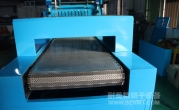 2、外形尺寸(約):總長10000*高1600*寬1300mm;進料部分長500mm,烘干部分長8000mm,緩沖區(qū)長200mm,冷卻區(qū)長800mm,出料部分長1500mm;進料處輸送帶離地高970mm;